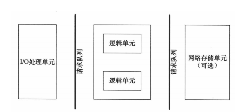 逻辑单元内部的一种高效编程方法:有限状态机(finite state machine)。有的应用层协议头部包含数据包类型字段,每种类型可以映射为逻辑单元的一种执行状态,服务器可以根据它来编写相应的处理逻辑。如下是一种状态独立的有限状态机: