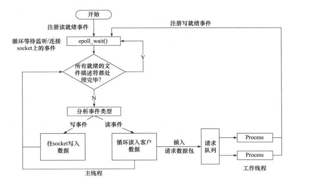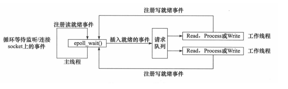 对于注册了 EPOLLONESHOT 事件的文件描述符,操作系统最多触发其上注册的一个可读、可写或者异常事件,且只触发一次,除非我们使用 epoll_ctl 函数重置该文件描述符上注册的 EPOLLONESHOT 事件。这样,当一个线程在处理某个 socket 时,其他线程是不可能有机会操作该 socket 的。但反过来思考,注册了 EPOLLONESHOT 事件的 socket 一旦被某个线程处理完毕, 该线程就应该立即重置这个socket 上的 EPOLLONESHOT 事件,以确保这个 socket 下一次可读时,其 EPOLLIN 事件能被触发,进而让其他工作线程有机会继续处理这个 socket。
